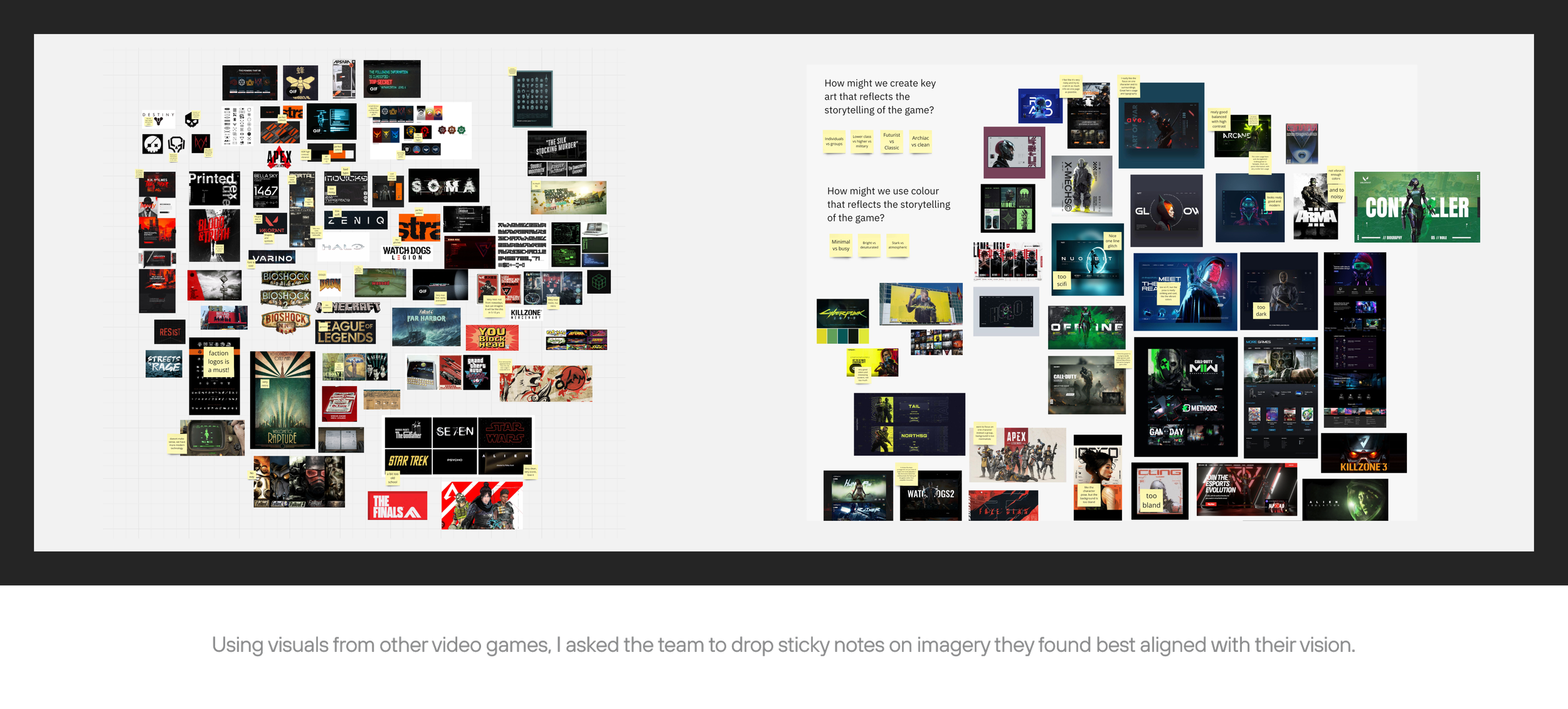 The problem was - none of their team could decide how they wanted this to look. They could, however, tell us what ‘type’ of game they were planning. It was an innovative fusion of a traditional first person shooter, cross with the strategy of a MOBA, and the tone was to be a gritty, noir-style military shooter where opposing factions compete against one another for resources.
