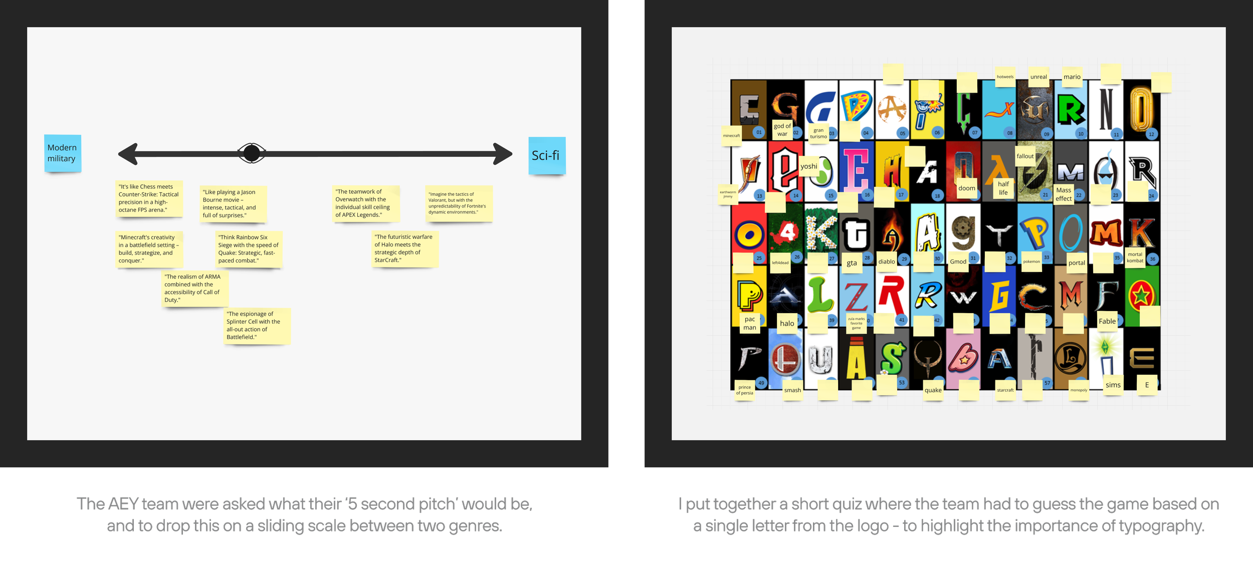 Before getting started, I wanted to better understand the direction they wanted to take, so I decided to put together an interactive workshop for the guys at AEY to help spark their creativity and funnel us into a direction.