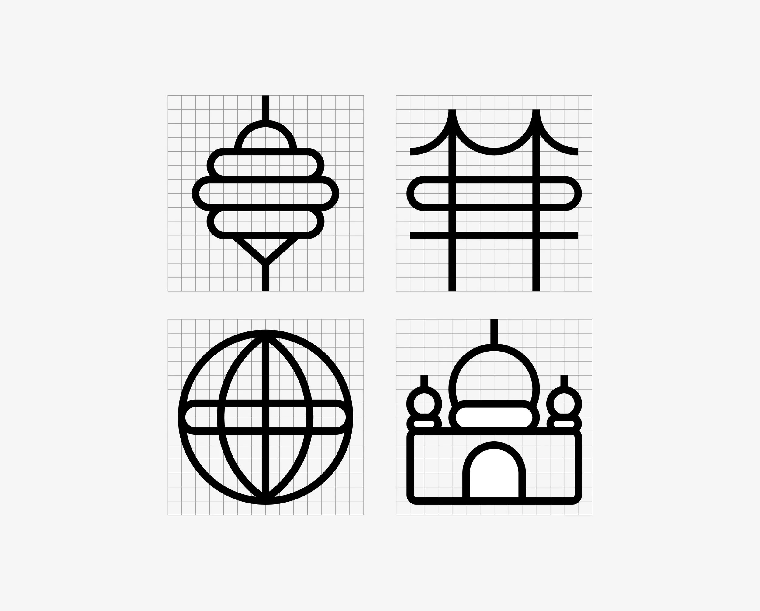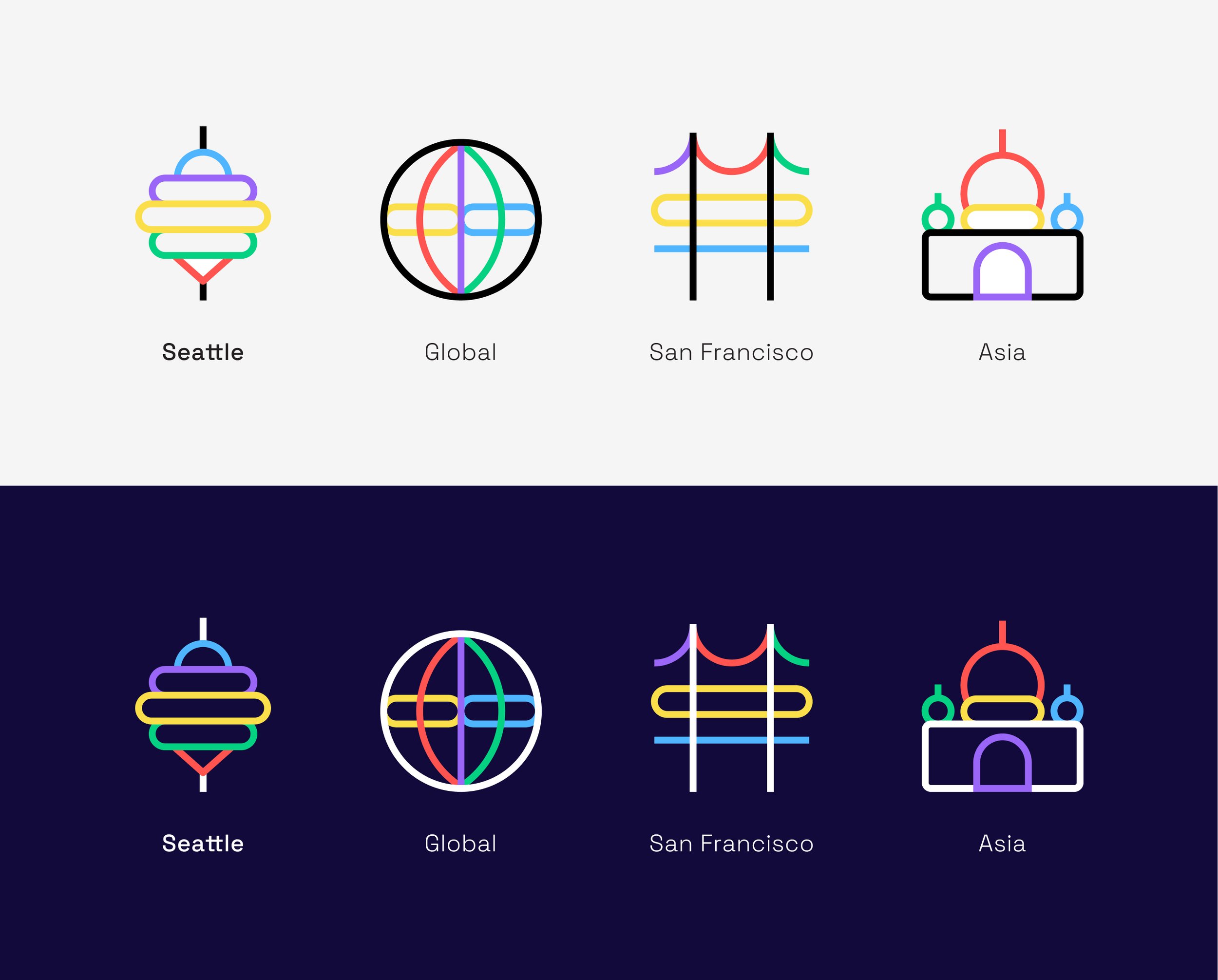 I had a lot of fun with iconography in this project - as one of the asks was to come up with a way to ‘sub-brand’ each event. As these typically happen in major world cities, I played with the idea of crafting abstract iconography for world landmarks - using the Flink design system.